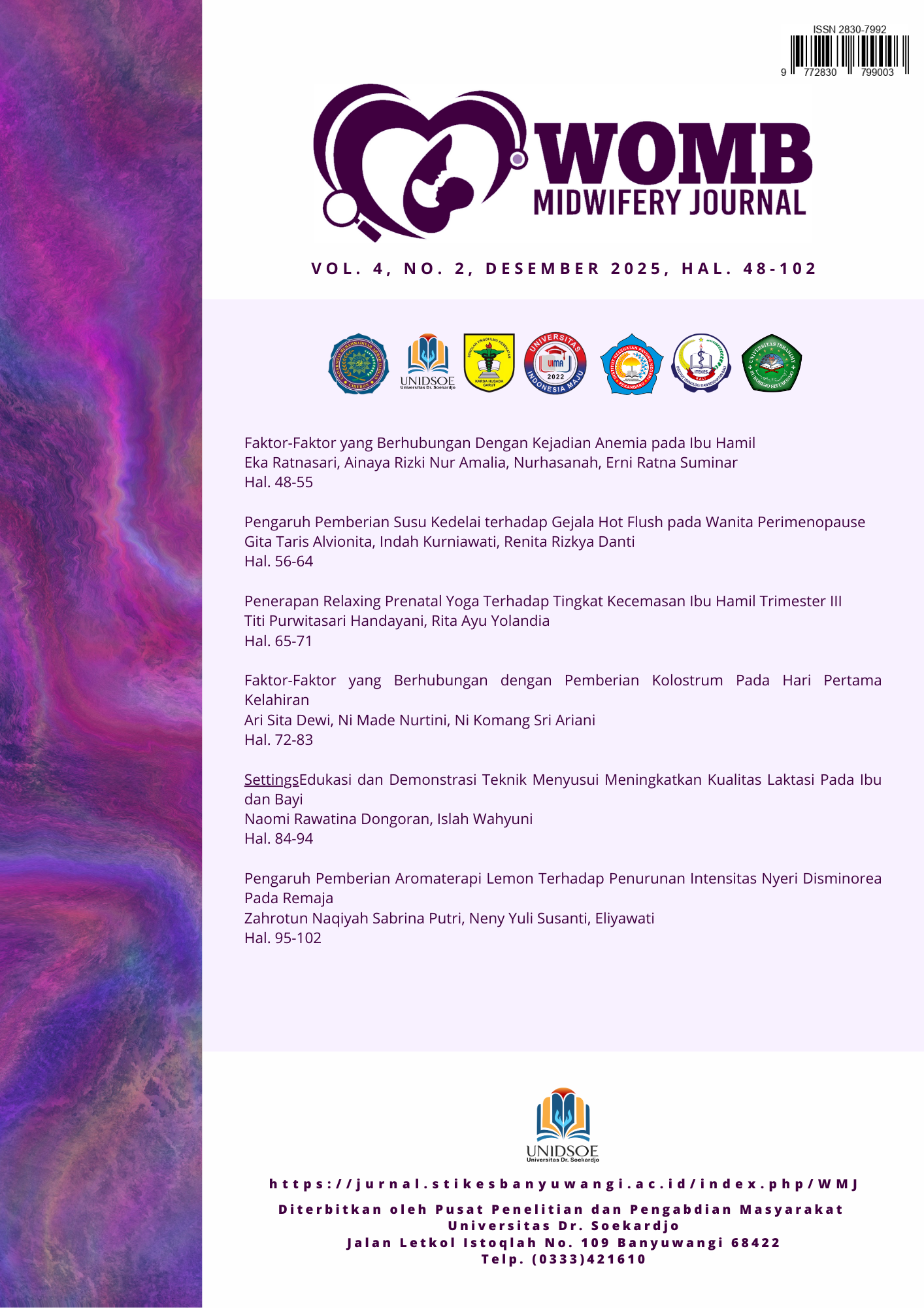 In 2020, the incidence of bleeding in Indonesia was 28.7%, caused by anemia in pregnant women. Anemia can increasei thei risk of preterm labor, low birth weight, and even maternal and infant mortality. Anemia is influenced by various factors, including maternal age, gestational agei, parity, education level, occupation, knowledge, and nutritional status. This study aims to determinei factors associated with anemia among pregnant women at thei Kalijaga Community Health Center in Cirebon City in 2025. This study uses an observational analytical design with cross-sectional design. There are maternal age, gestational age, parity, education, employment, nutritional status, knowledge of anemia incidence in pregnant women at Puiskeismas Kalijaga, Cirebon City in 2025. It is hoped that health workers, cadres or families will help increase the interest of pregnant women so that they want to participate in counseling activities both in pregnant women's classes, community health centers or integrated health posts (Posyandu) to provide health education in an effort to prevent anemia and improve maternal and infant health.